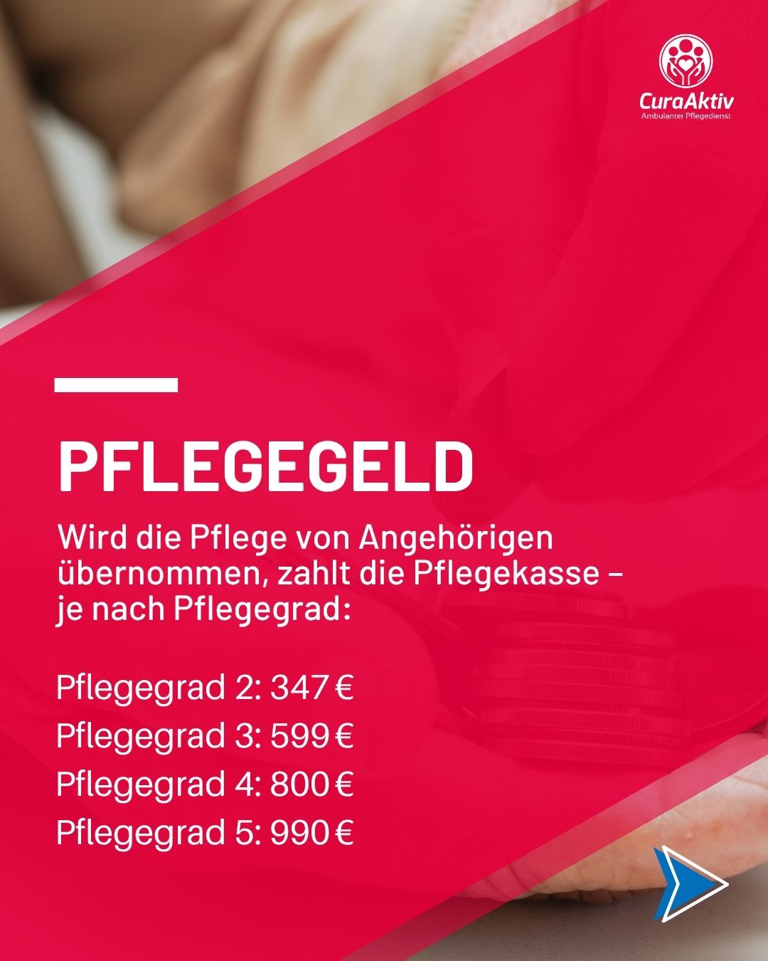 Pflegegeld, Sachleistungen, Entlastungsbeträge, Hilfsmittel & mehr – die Pflegekasse übernimmt viel mehr, als viele denken.